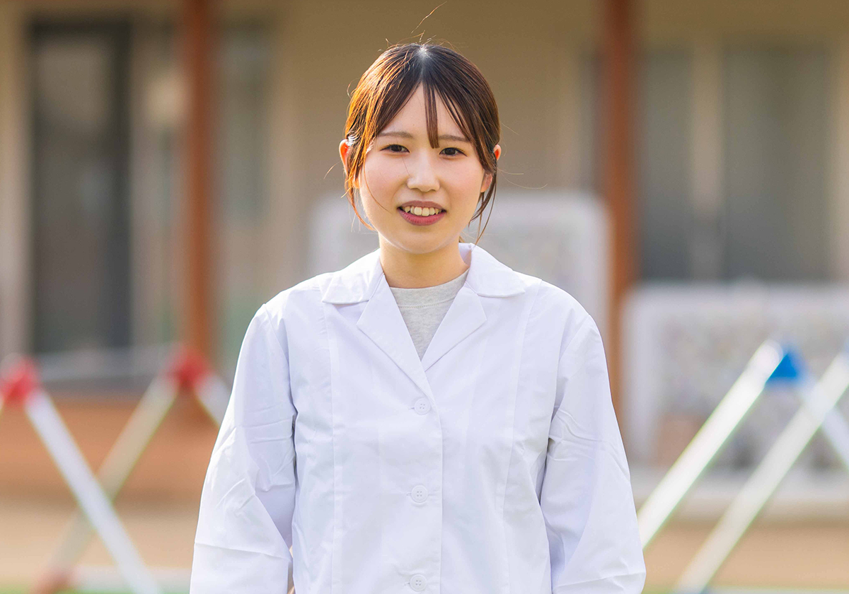 中学生の時、14歳の挑戦で幼稚園に行った際に、子どもたちが楽しそうに給食を食べている姿を見て、この環境で働きたいと思うようになりました。食事は成長を支える大切な時間だと思うので、栄養士として子どもたちが「おいしい」と喜んでもらえるような給食を提供したく、ここの園で働くことを決めました。