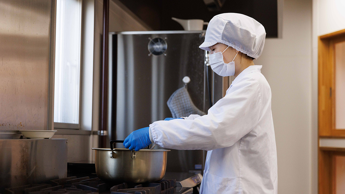 子どもたちが毎日安心して食事を楽しめるよう、食材の大きさや柔らかさを配慮し、誤嚥が起きないよう丁寧に調理することを大切にしています。また、正確なアレルギー対応や季節の食材を取り入れた献立作成にも力を入れています。子どもたちの笑顔や反応を大切にしながら、安心で楽しい給食づくりに努めています。