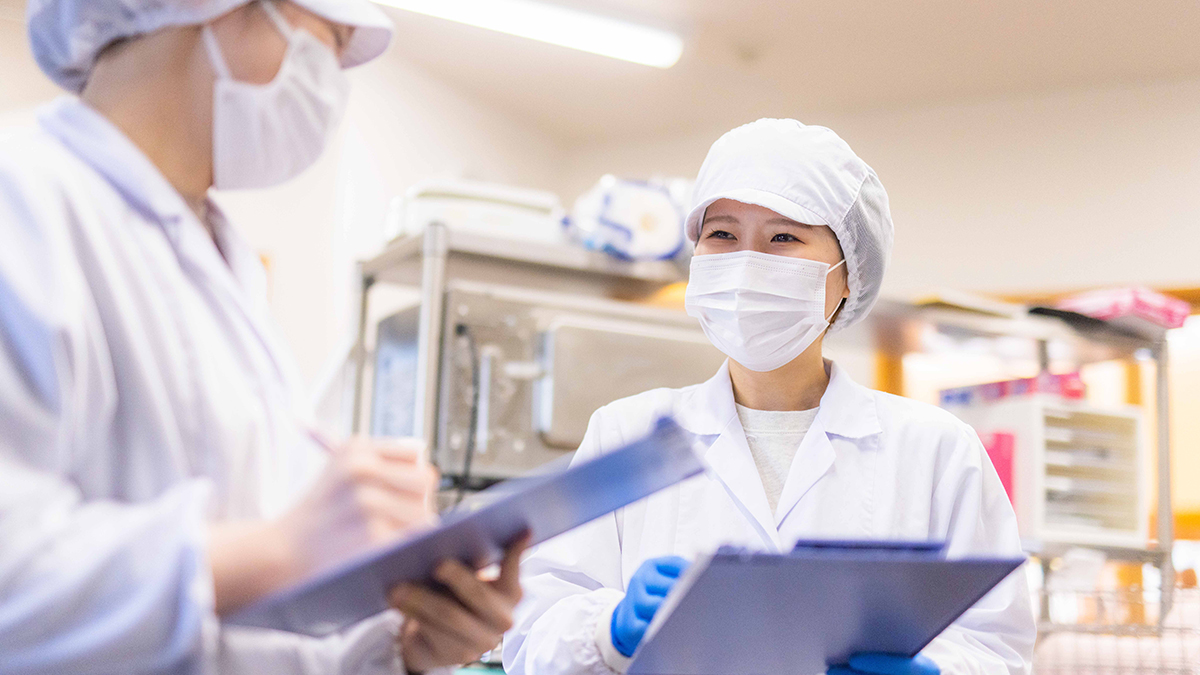 午前のおやつ、給食、午後のおやつの準備や食器洗浄、献立作成、食材の発注が主な仕事です。子どもたちに安心して食べてもらえるようアレルギー対応や栄養バランスに気を配りながら献立を作成しています。また、季節の食材を取り入れた給食やおやつを提供し、食べることを楽しめるよう工夫しています。