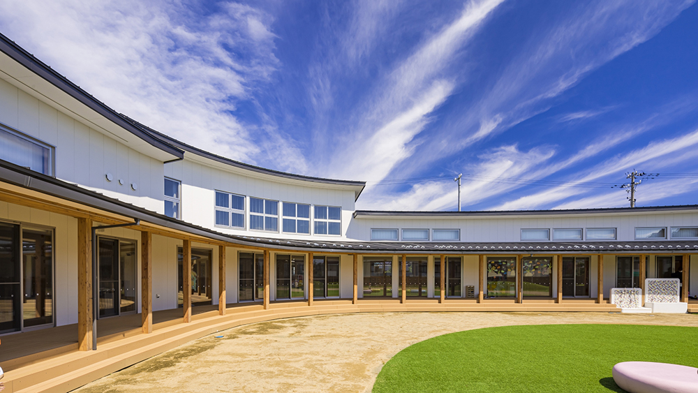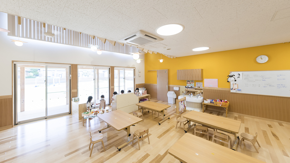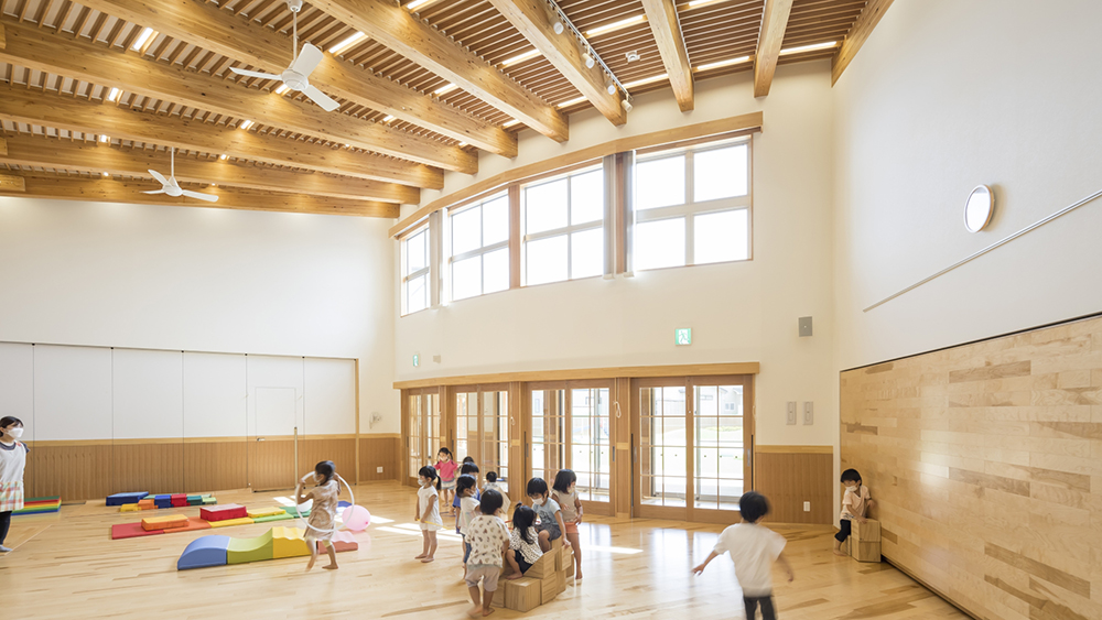 保育室、廊下、テラス、園庭の一体感を意識した表情を考えました。