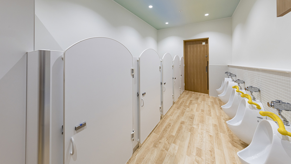 建物の白を基本としながらいろんな気持ちに寄り添えるトイレとしました。