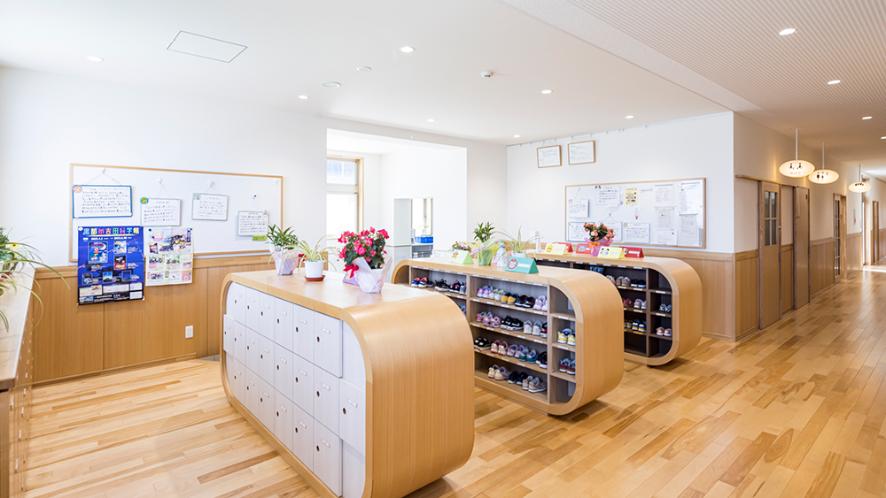 園児が触れる部分でもあるので暖かみがありかつ主張や模様の少ない白が適切