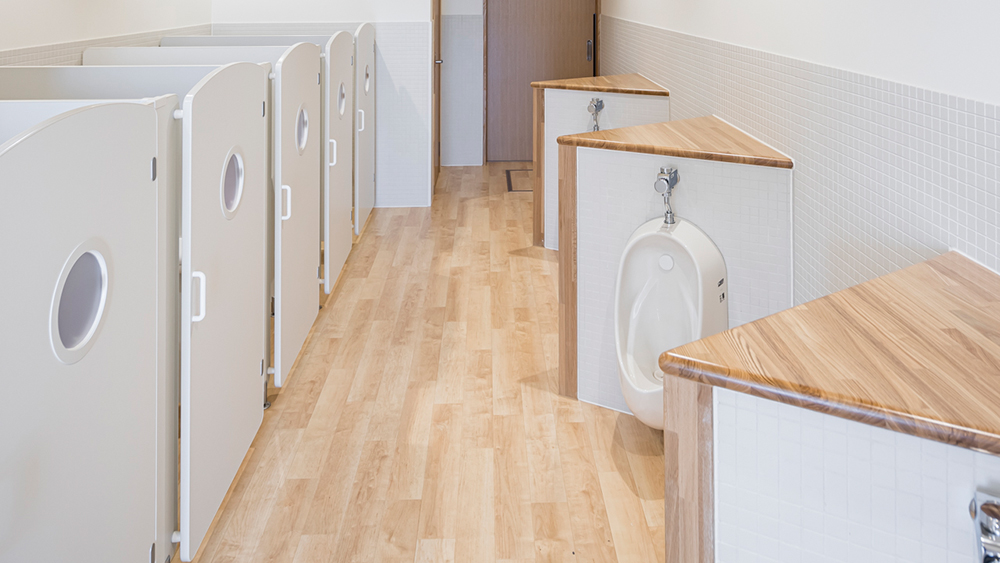 建物の白を基本としながらいろんな気持ちに寄り添えるトイレとしました。