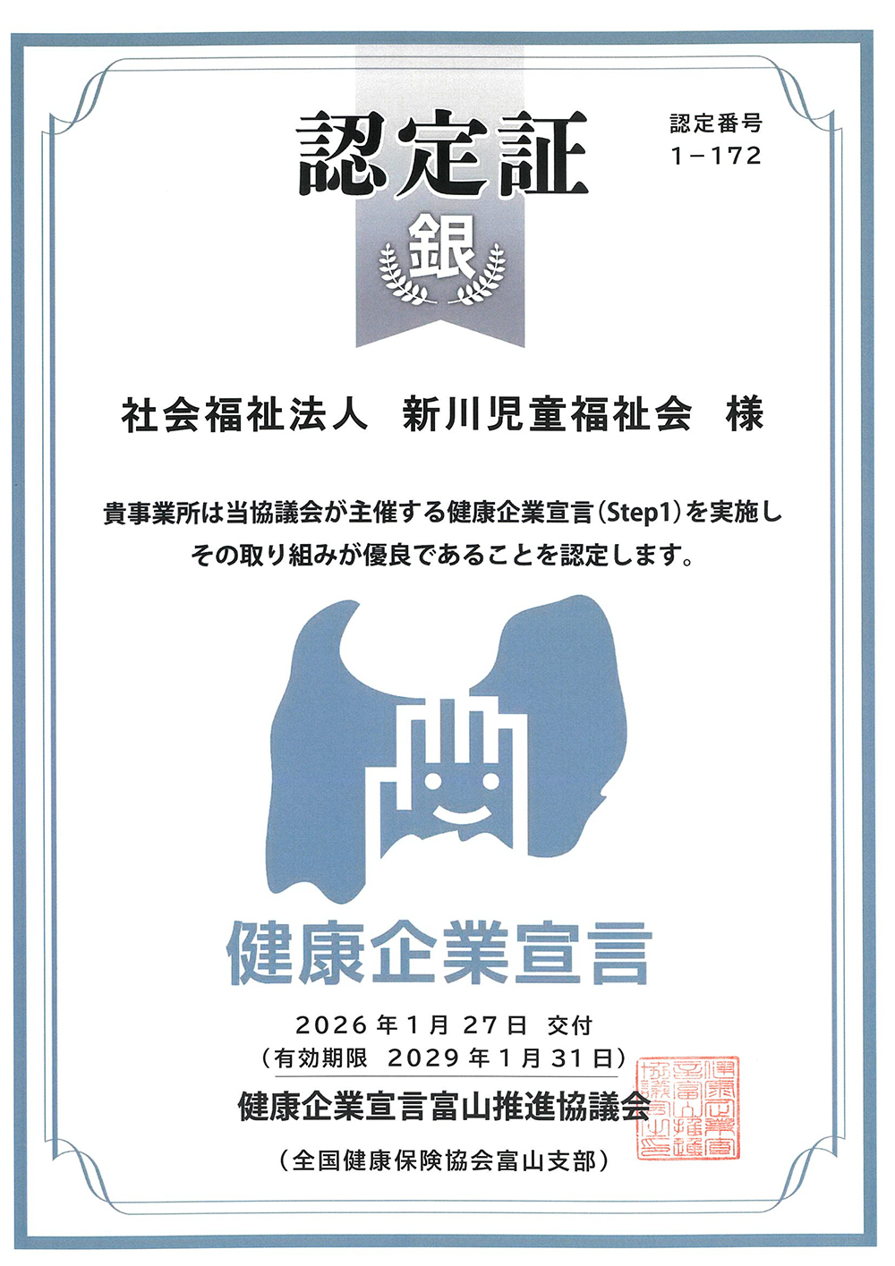 - とやま健康企業宣言&認定(職員のこころと体の健康づくりに努めています)