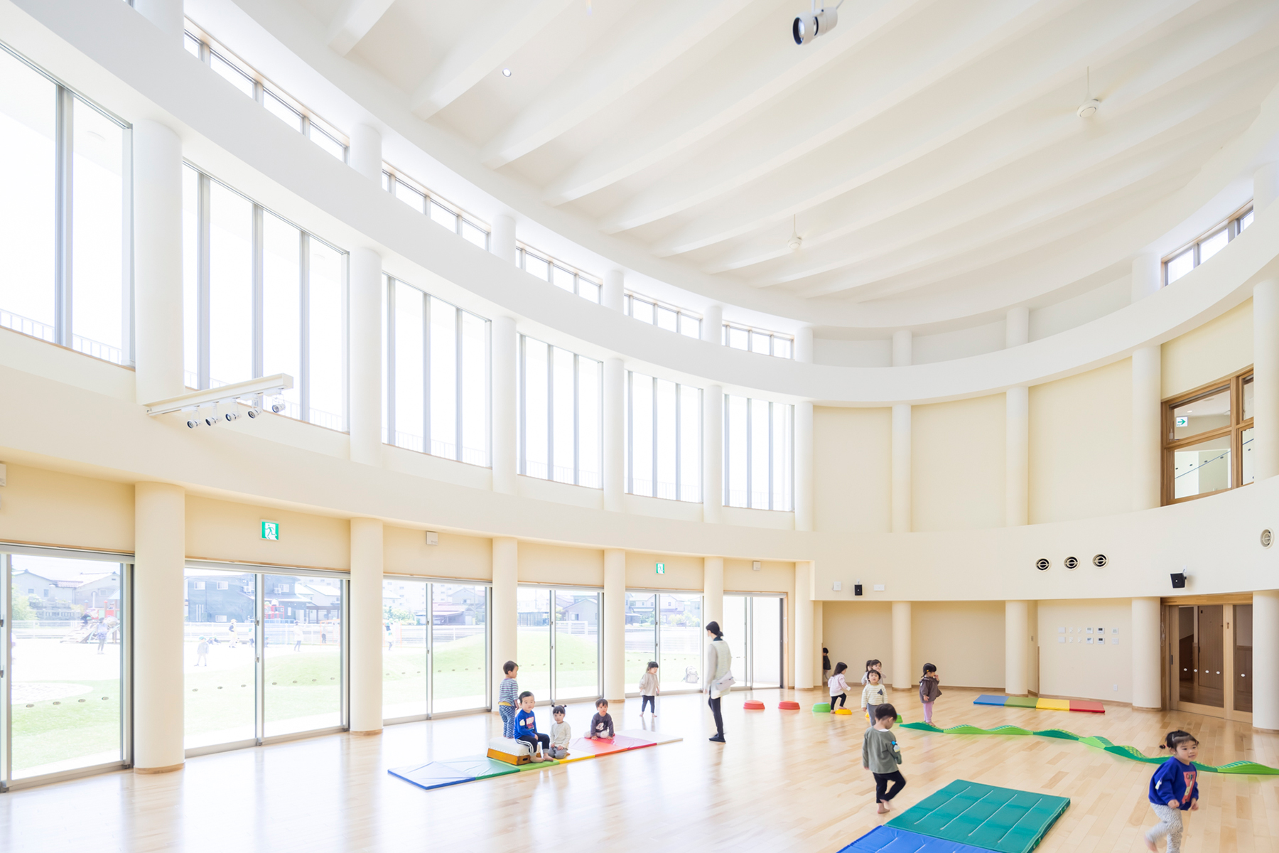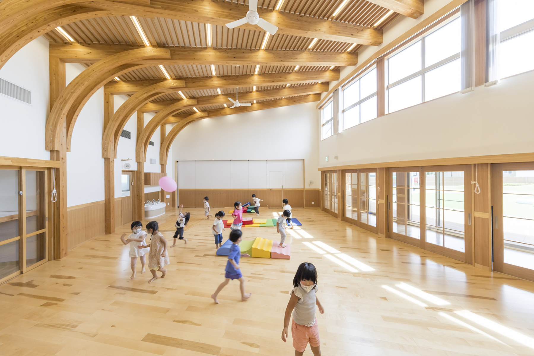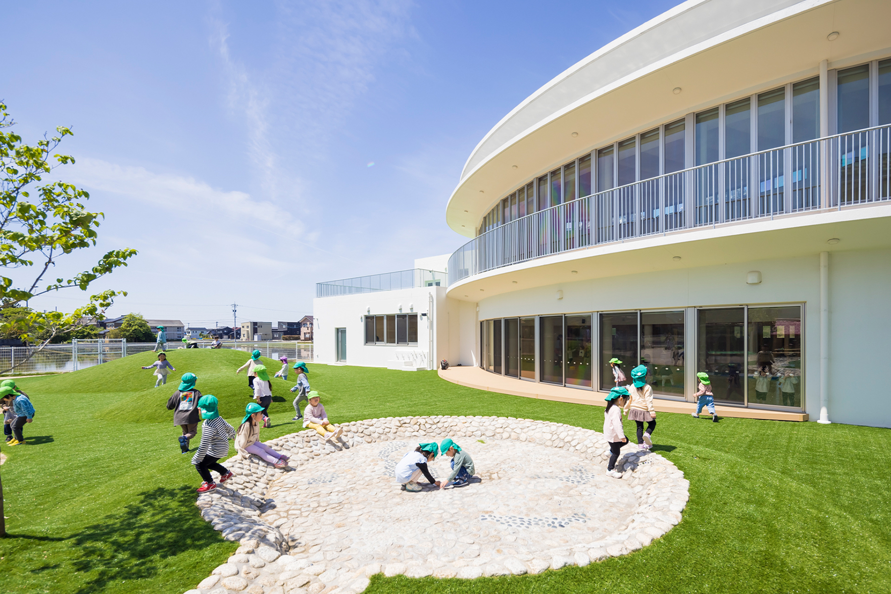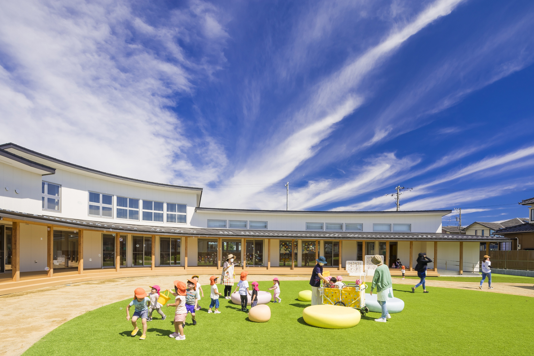 全ての園は広々とした空間設計がされており、全室冷暖房完備、清潔です。園庭や畑では様々な運動や自然体験ができます。