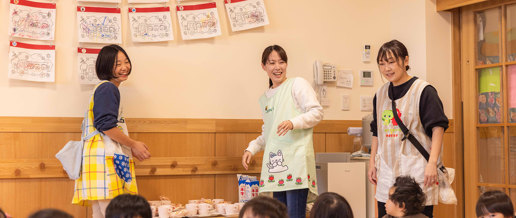- 子どもたちの日常生活のサポート(食事、着替え、トイレなど)